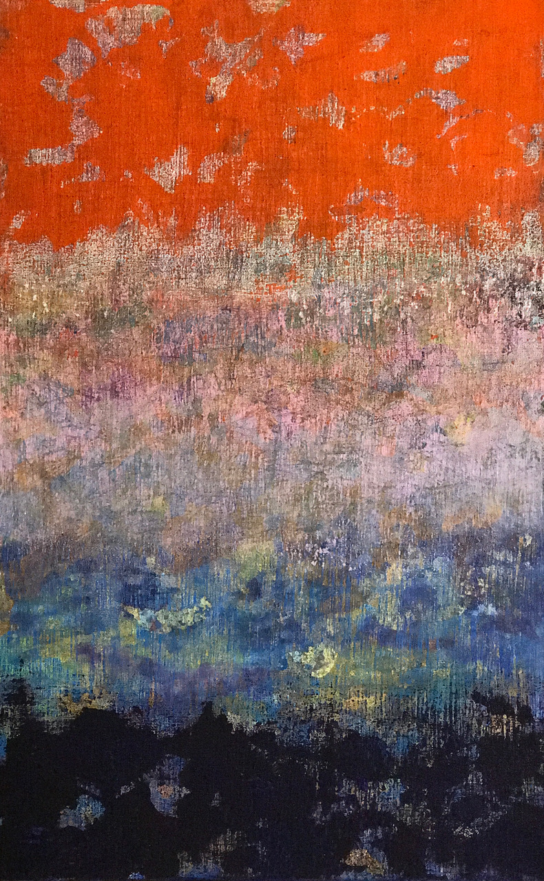 In these paintings are his interest in Japanese art and design, textile arts, self-discovery, thoughts, dreams, creativity, and play.